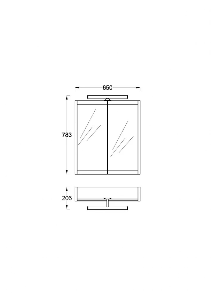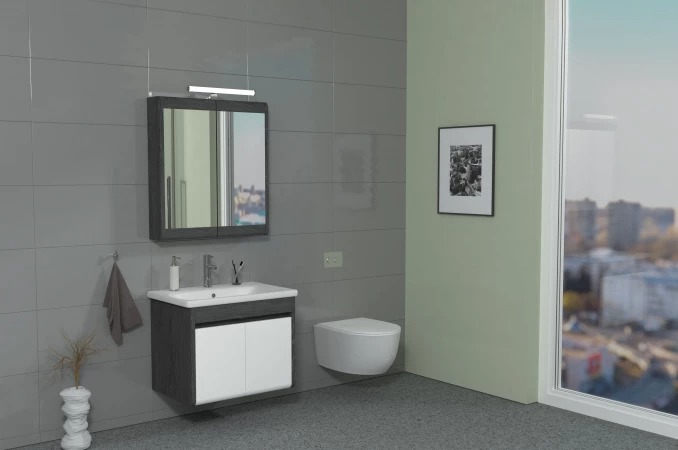 Dimenzije: 650 x 783 mm Sa ormarićem i LED rasvetom Korpus i front izrađeni od belog medijapana sa dekorativnom folijom