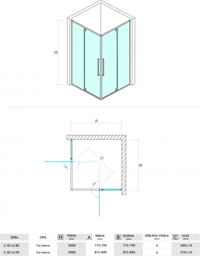 Dimenzije: 800 x 800 x 2000 mm