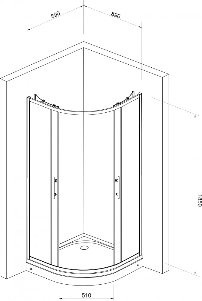 Polukružni oblik R900mm Providno staklo sa kvadratićima debljine 5mm Hromirani okvir Hromirane ručice Proizvod dolazi BEZ tuš kadice