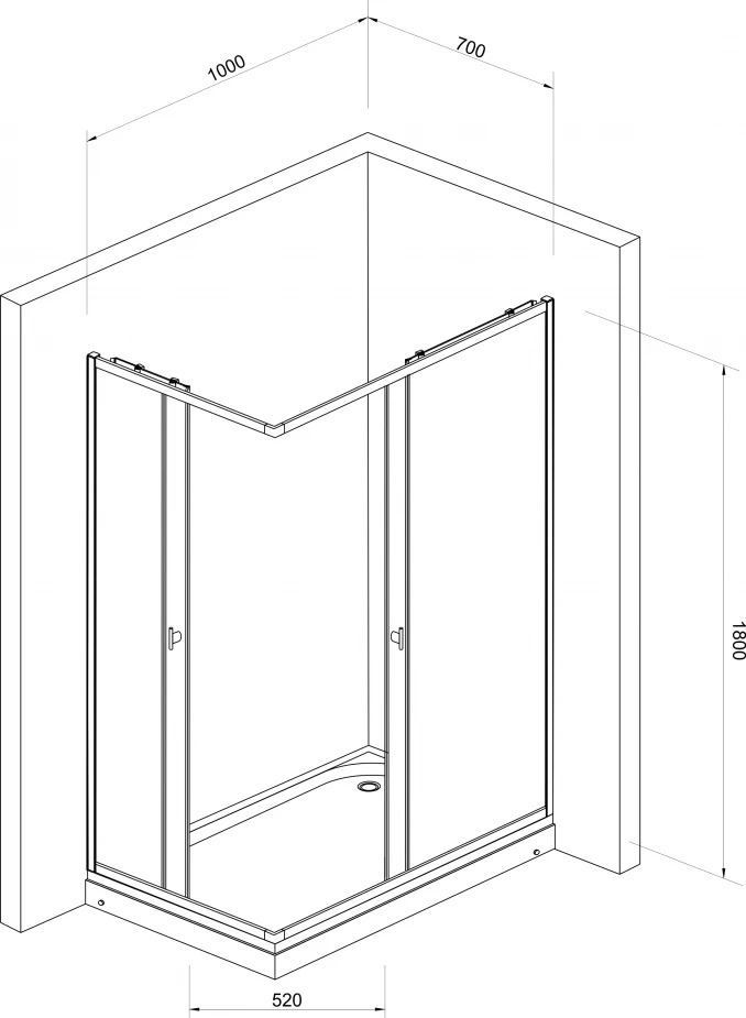 Kvadratni oblik Dimenzije: 1000 x 700 mm Mat staklo debljine 4 mm Hromirani okvir Hromirane ručice Levo otvaranje Komplet sa tuš kadicom
