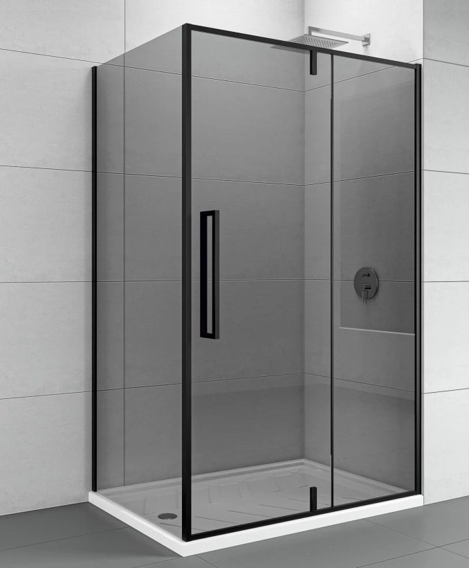 Stakleni paravan CONCEPT ABSOLUT BLACK 90x200cm crni ram pivot vrata i fiksno staklo C-02-B6220F