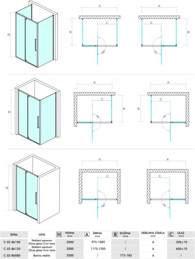 Stakleni paravan CONCEPT ABSOLUT BLACK